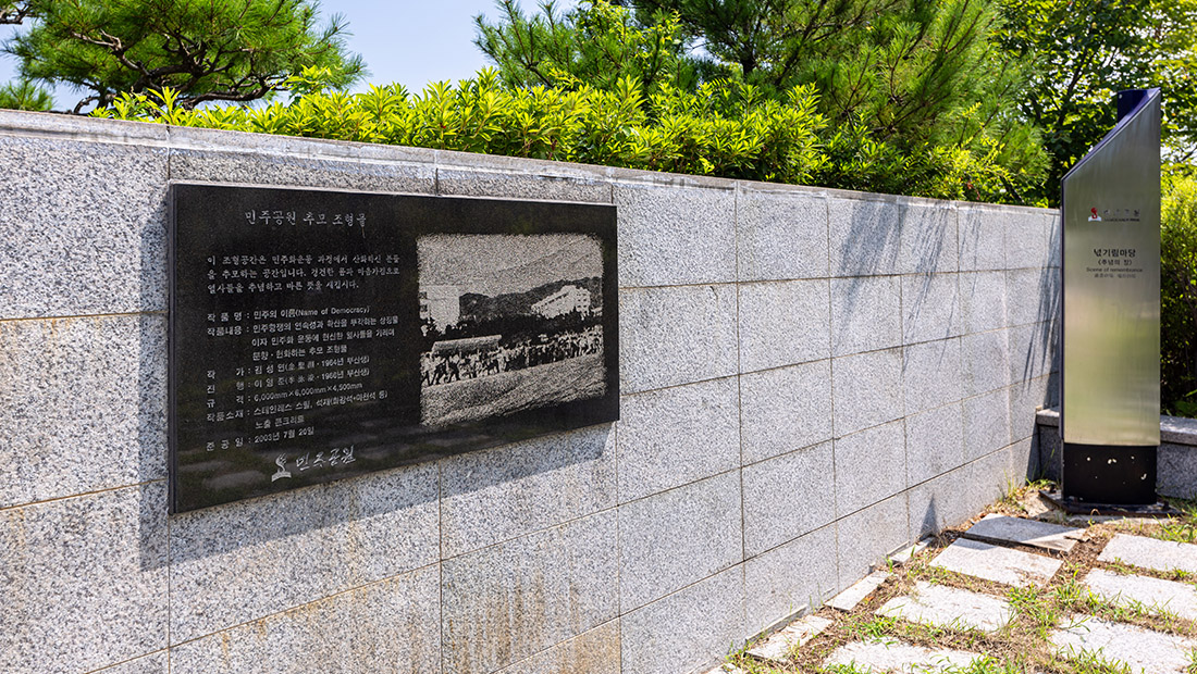 It is a memorial space where incense is burned and flowers are laid in memory of the martyrs who devoted themselves to the democratization movement, and there is a symbol called ‘Name of Democracy’ that highlights the continuity and presentness of the democratic struggles.